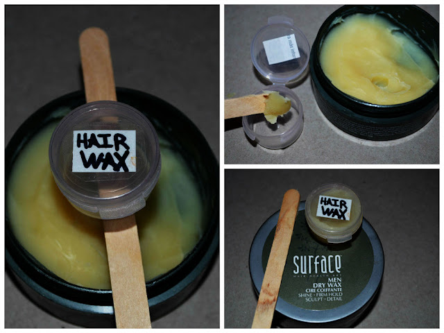 Fellas, we know you just woke up like that, but just for fun pretend ok? You’ll need a small container (I used a tiny paint cup because I knew the lid would keep closed). Some kind of utensil (Popsicle stick, butter knife could work too) to remove the product from the original container in a sanitary manner. I know you’re going to use your finger, but I’m a hair stylist I have to advise against it. The product you are going to use and something to make a label. I used good ole Sharpie + Paper + Tape method and made my own. From beauty school I learned that labels from a label maker do not stick without tape, so why waste the label?
