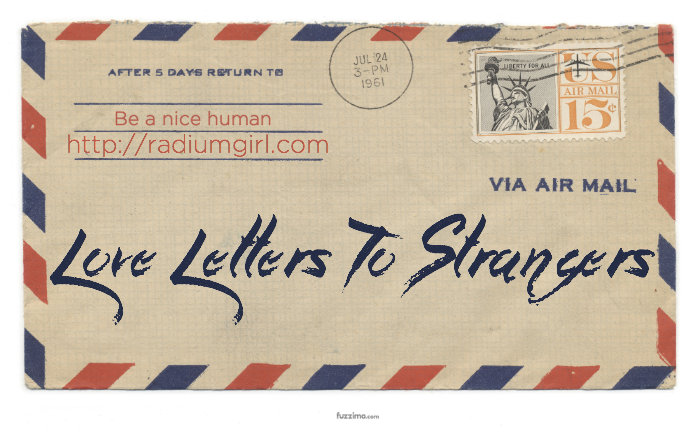 Now I cannot take credit for the idea of Love Letters To Strangers, but I can help spread it around. The original idea came from… I’m not sure where, but there is a movement, which has an official website so that’s something. It hasn’t been updated in awhile, but there are/where workshops and all sorts of stuff.